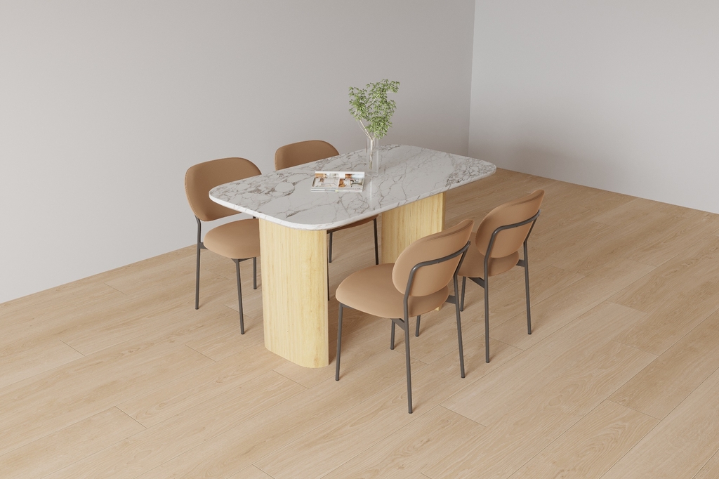 BA2508 Nordic là biểu tượng của phong cách Scandinavian (Bắc Âu) sang trọng, kết hợp vẻ đẹp tự nhiên của gỗ sồi và sự tinh tế của đá Marble. Bộ bàn ăn này được thiết kế với đường nét mạnh mẽ, tối giản, mang lại sự đẳng cấp và tiện nghi cho phòng ăn hiện đại.