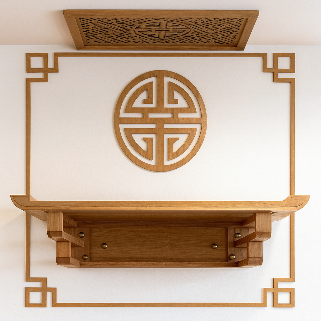 Bàn Thờ Treo Tường Hiện Đại – Chất Liệu Gỗ Tự Nhiên, Họa Tiết Chữ Phúc